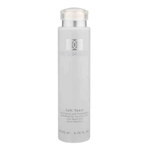 A calming and moisturizing skin toner without alcohol. It soothes sensitive, stressed skin and gives the skin an immediate feeling of relaxation. In this way, DR. GRANDEL Soft Tonic ideally prepares the skin for the following care steps.